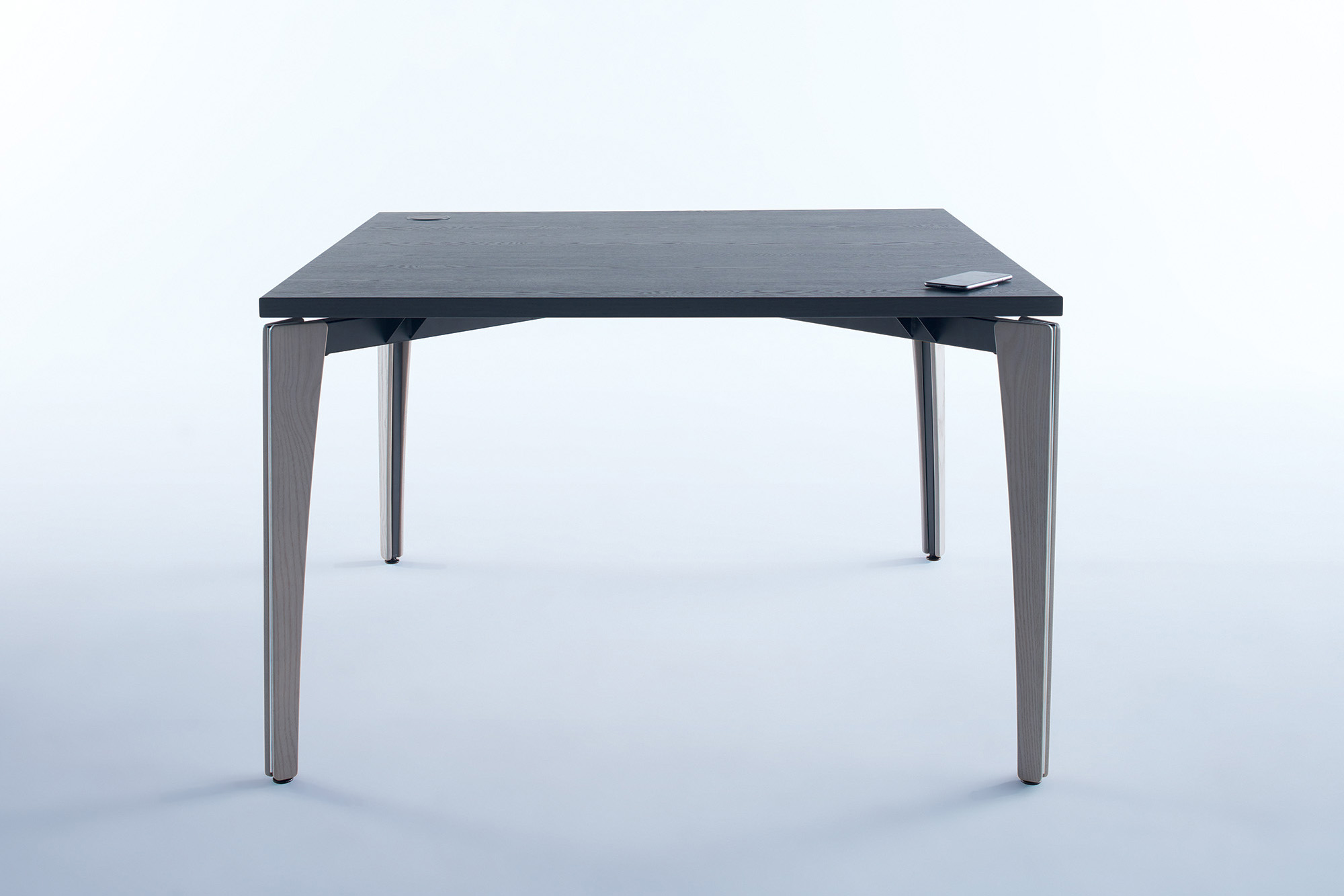 A Flawless Blend of Grace and StrengthArvo draws its inspiration from the strongest shape in architecture: the triangle. Tapered wooden legs conceal a durable triangular frame, as hinted at by the elegant metal reveal. This refined table can be used in gathering, studying or meeting areas. Add charging with various options, including the wireless V Charge.