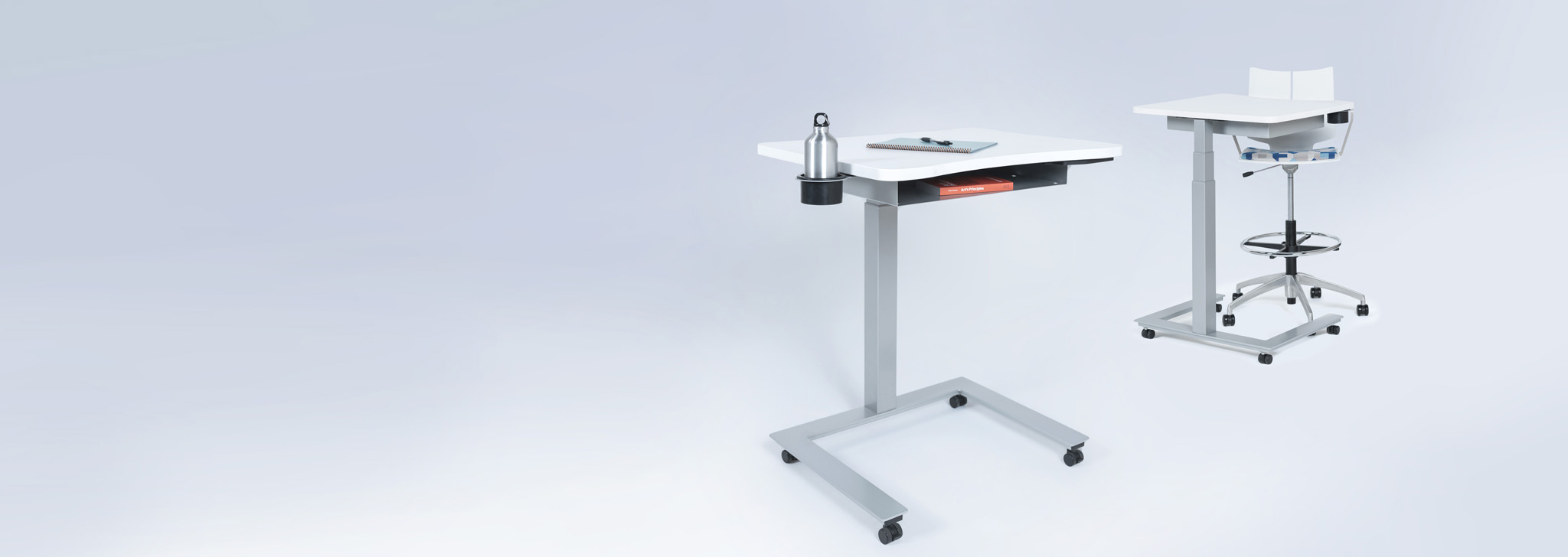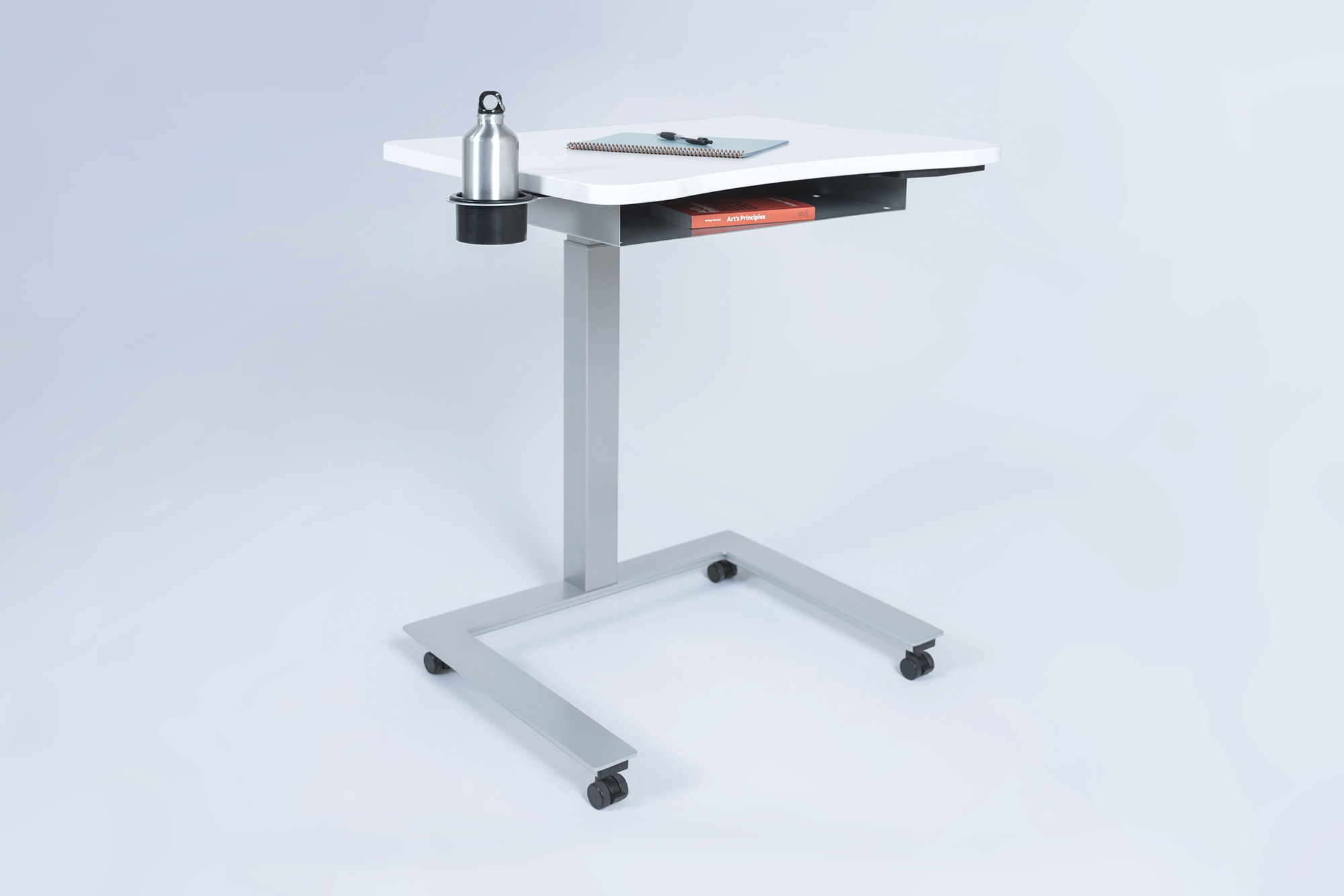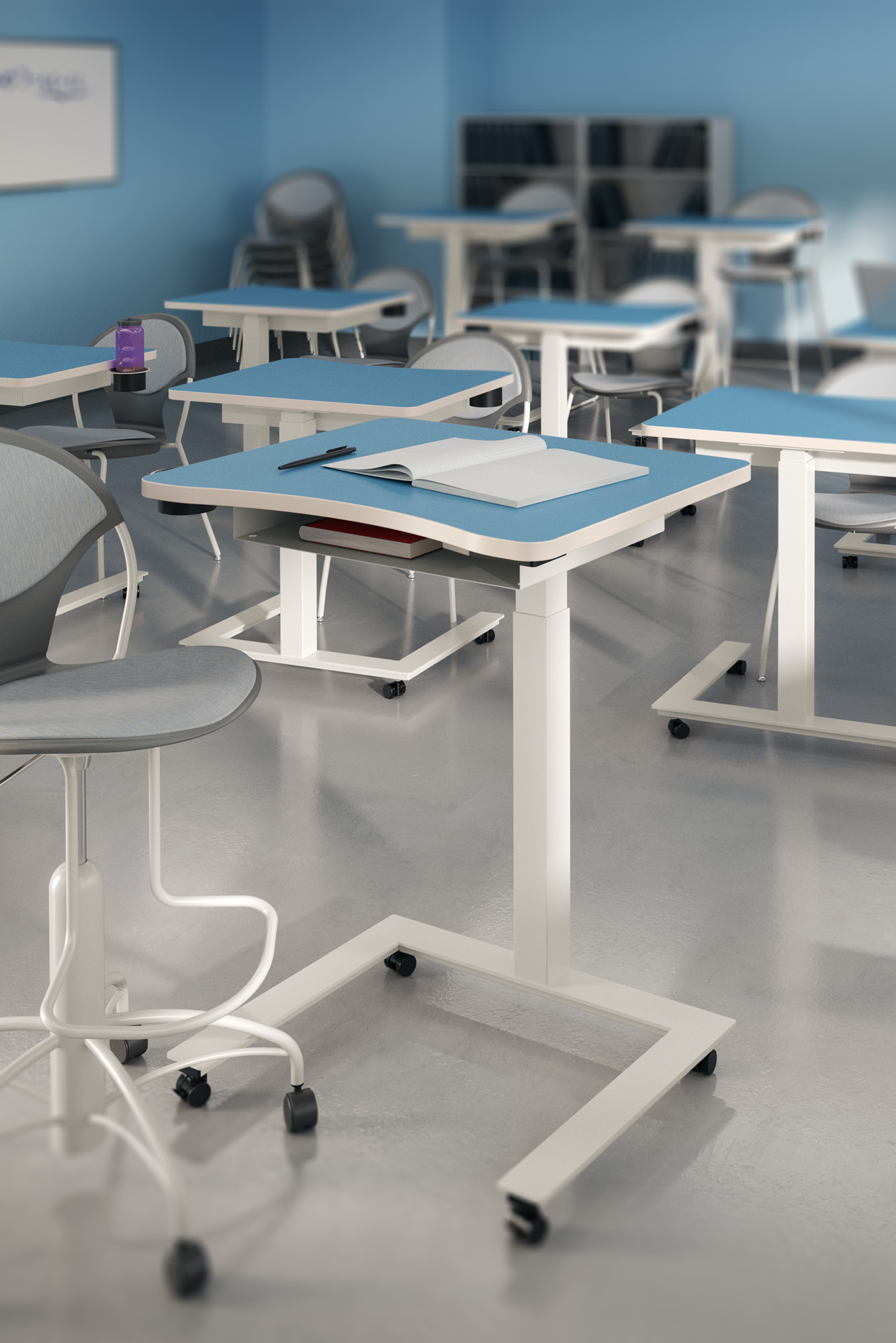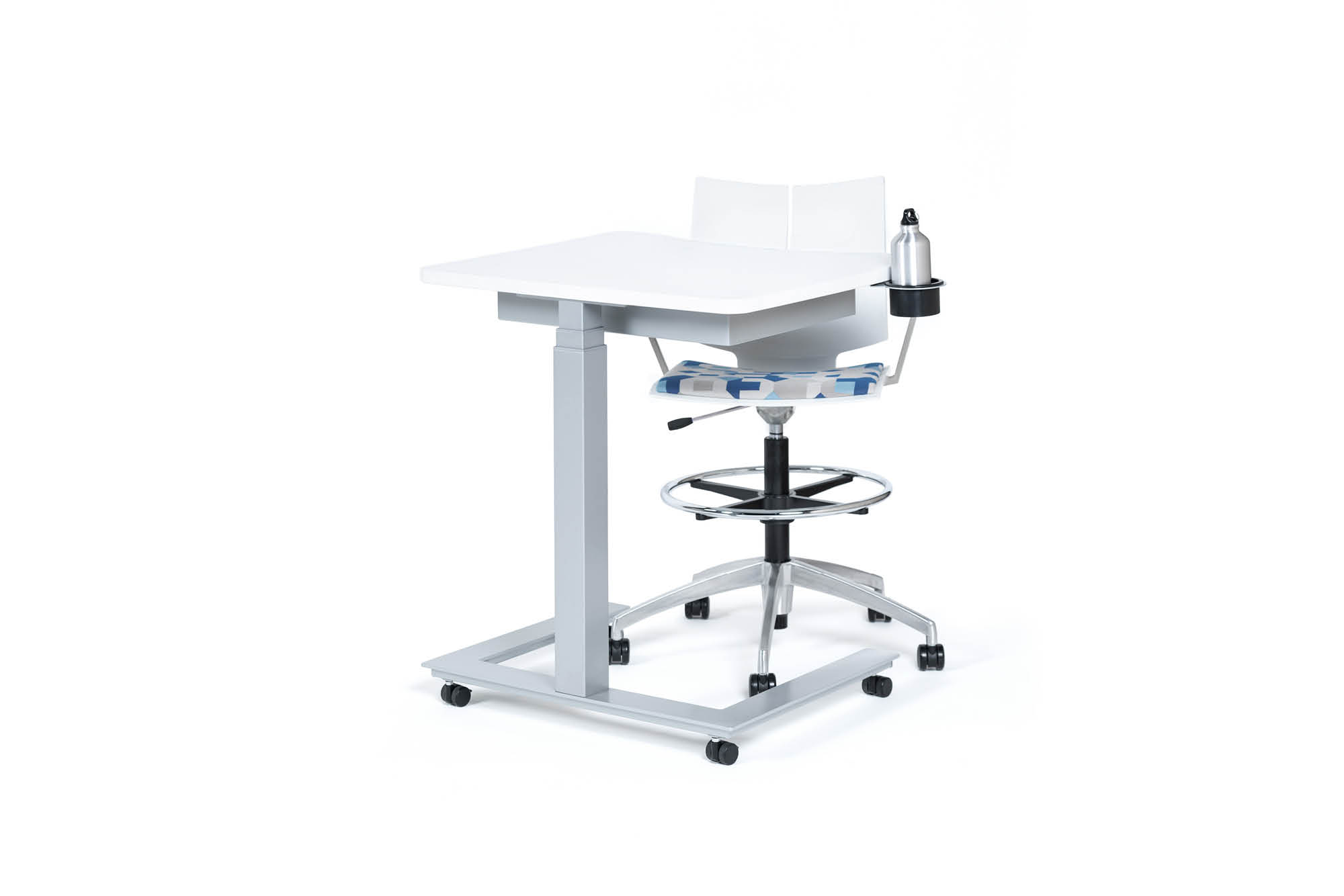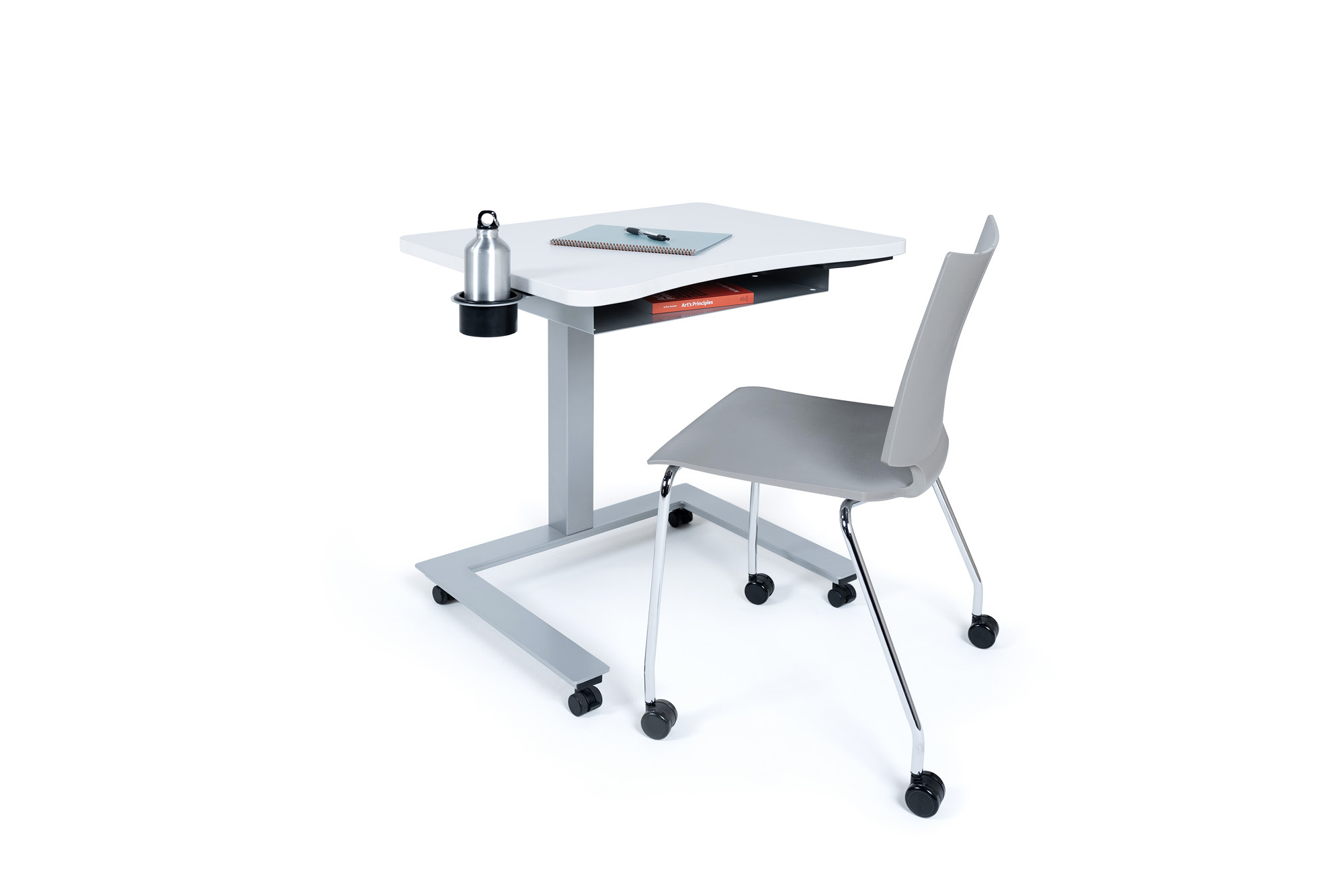 Free to RoamEmbrace the ebb and flow of active environments with Darby. This petite, single-user table moves freely as purposes of dynamic spaces shift from individualized focus to group connections and more. Darby is sensibly designed with casters, book tray and retractable cup holder. The tide top is curved on the user side and can be adjusted to various heights, intuitively supporting ergonomics and wellness. Enjoy freedom and flexibility with Darby.